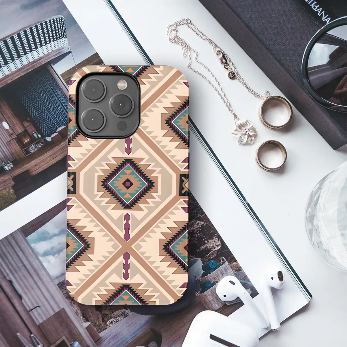 Immerse yourself in the vibrant spirit of the Southwest with our Navajo Ethnic Phone Case. Adorned with intricate motifs inspired by the rich heritage of Native American craftsmanship, this case will elevate the style of your iPhone, Samsung, or Pixel device. Its durable construction will protect your phone from daily wear and tear while showcasing your unique sense of style. Embrace the beauty and wisdom of ancient traditions with our Navajo Ethnic Phone Case.
