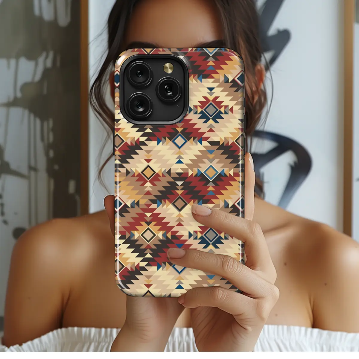 Accessorize your phone with a touch of Southwest style with our Navajo Tribal Geometric Phone Case. This eye-catching case features an intricate geometric pattern inspired by traditional Navajo designs, showcasing bold colors and sharp angles. The durable construction ensures protection for your device from scratches and drops, while the sleek design complements any outfit. Whether you're using an iPhone, Samsung, or Pixel, this case makes a statement wherever you go.
