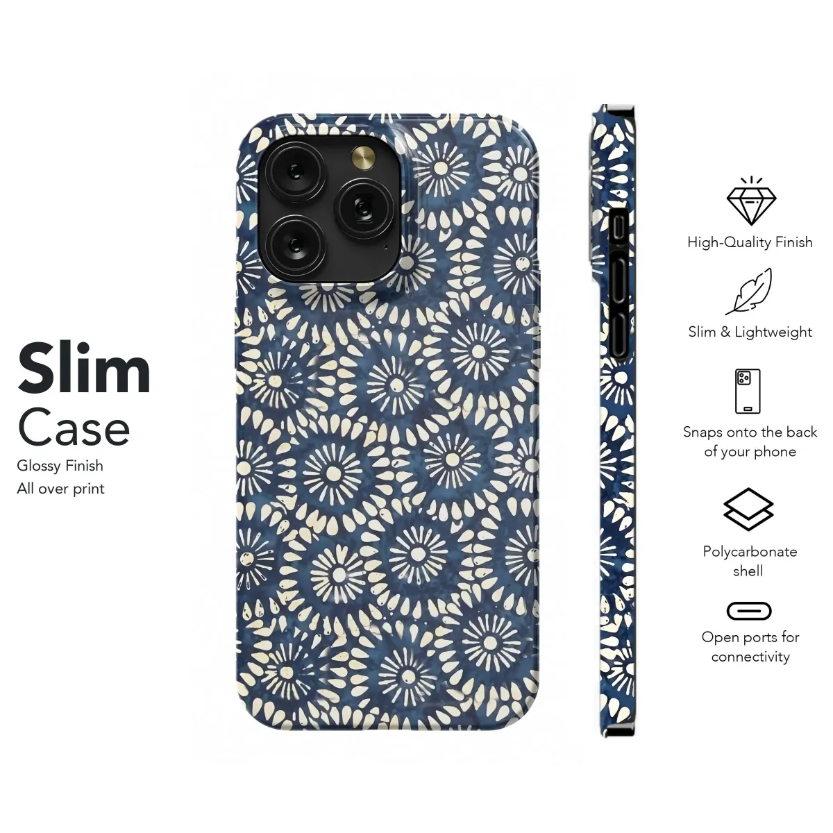 Stylish phone case featuring a navy bloom pattern. Compatible with iPhone, Samsung, and Pixel phones.