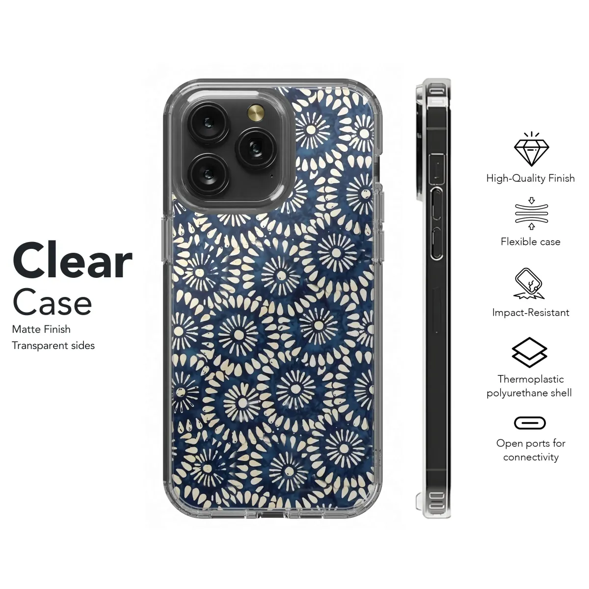 Stylish phone case featuring a navy bloom pattern. Compatible with iPhone, Samsung, and Pixel phones.