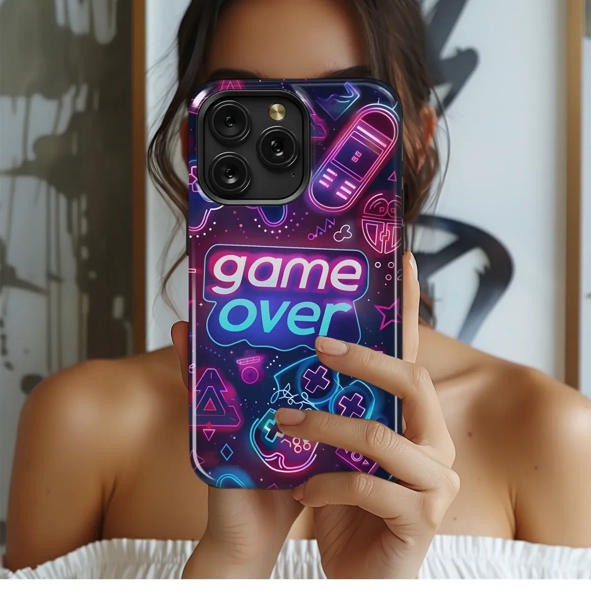 Level up your style with this vibrant, retro-gaming-inspired design. Featuring a neon "Game Over" graphic alongside iconic controller symbols and pixelated elements, this bold print is perfect for showcasing your love of classic arcade games and 80s aesthetics. The eye-catching color palette of pinks, purples, and blues creates a truly electrifying look, making it a must-have accessory for any gamer or retro enthusiast. This high-quality, durable print offers vivid colors and crisp details, ensuring your device stays protected while expressing your unique personality. Express your inner gamer with this electrifying design that captures the energy and nostalgia of the golden age of gaming. It's a conversation starter and a stylish way to personalize your tech, turning your everyday device into a vibrant reflection of your passions. Show off your gaming pride with this totally rad accessory, making a statement wherever you go! This design is sure to be a hit with gamers, retro lovers, and anyone who appreciates a bold, unique aesthetic. Get yours today and prepare for endless compliments! #retro gaming #80s #neon #gamer #videogames #retrowave #synthwave #arcade #pixelart #gameover #accessories #personalized #techstyle