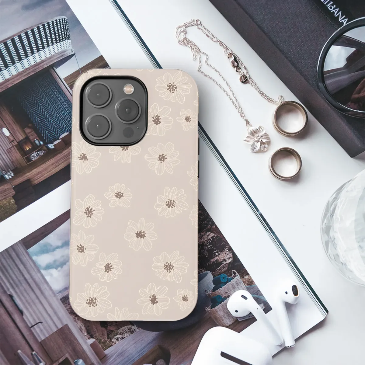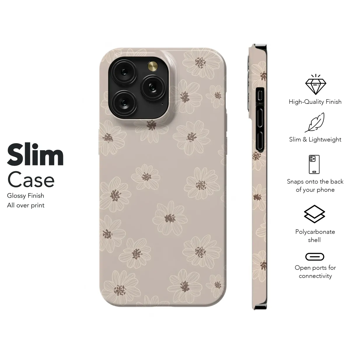 Adorn your device with this elegant floral design. Featuring a delicate arrangement of beige flowers with subtle brown centers on a soft taupe background, this design offers a sophisticated and timeless aesthetic. The minimalist line art style creates a calming and understated look, perfect for those who appreciate simple yet stylish designs. This charming pattern adds a touch of understated elegance to your everyday life, showcasing your unique taste and appreciation for subtle beauty. The high-quality print ensures vibrant colors and crisp details that will last. Upgrade your accessory with this beautiful design, adding a touch of sophistication and charm. This lovely design makes a thoughtful gift for friends and family, or a perfect treat for yourself. It's a stylish way to express your personal style, effortlessly blending into any setting. This versatile design complements a variety of styles, adding a touch of floral sophistication to your personal tech. Protect your device in style with this beautiful, durable design.