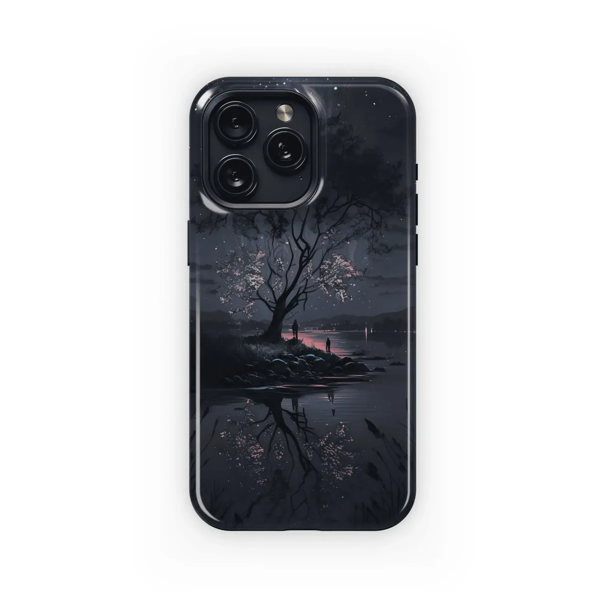 Evocative night bloom design with a mirrored reflection effect. Premium protection for your iPhone, Samsung, or Pixel. Style meets security.