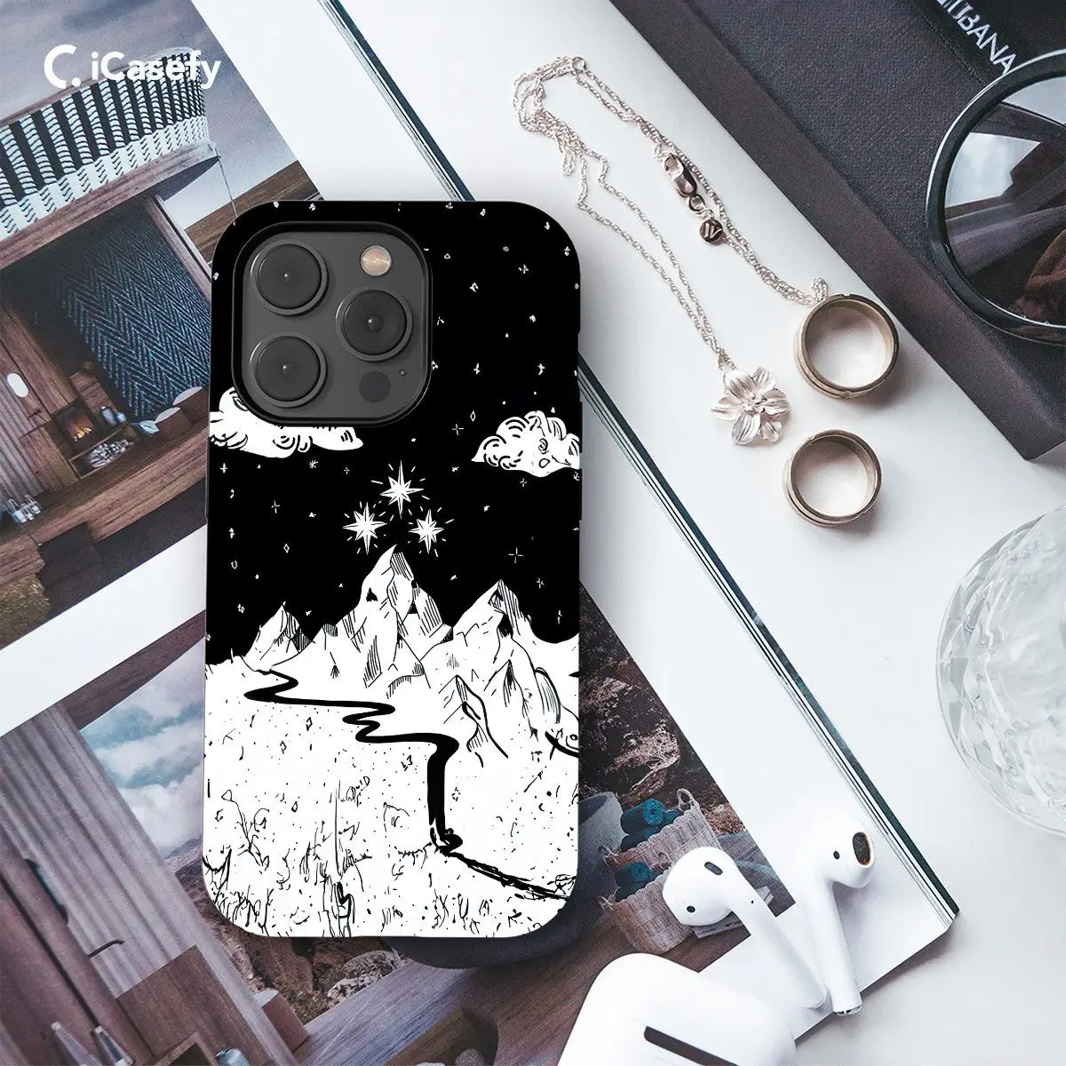 Introducing our Night Court Symbol Acotar Acomaf Velaris Mountain Stars River phone case, capturing the enchanting essence of Sarah J. Maas's fictional realm. Adorned with the iconic Night Court symbol against a backdrop of Velaris Mountain Stars and a serene river, this case immerses you in the beauty of the Night Court. Protect your device in style while embracing the magic of ACOTAR and ACOMAF series. Perfect for fans of fantasy literature and lovers of mesmerizing designs.