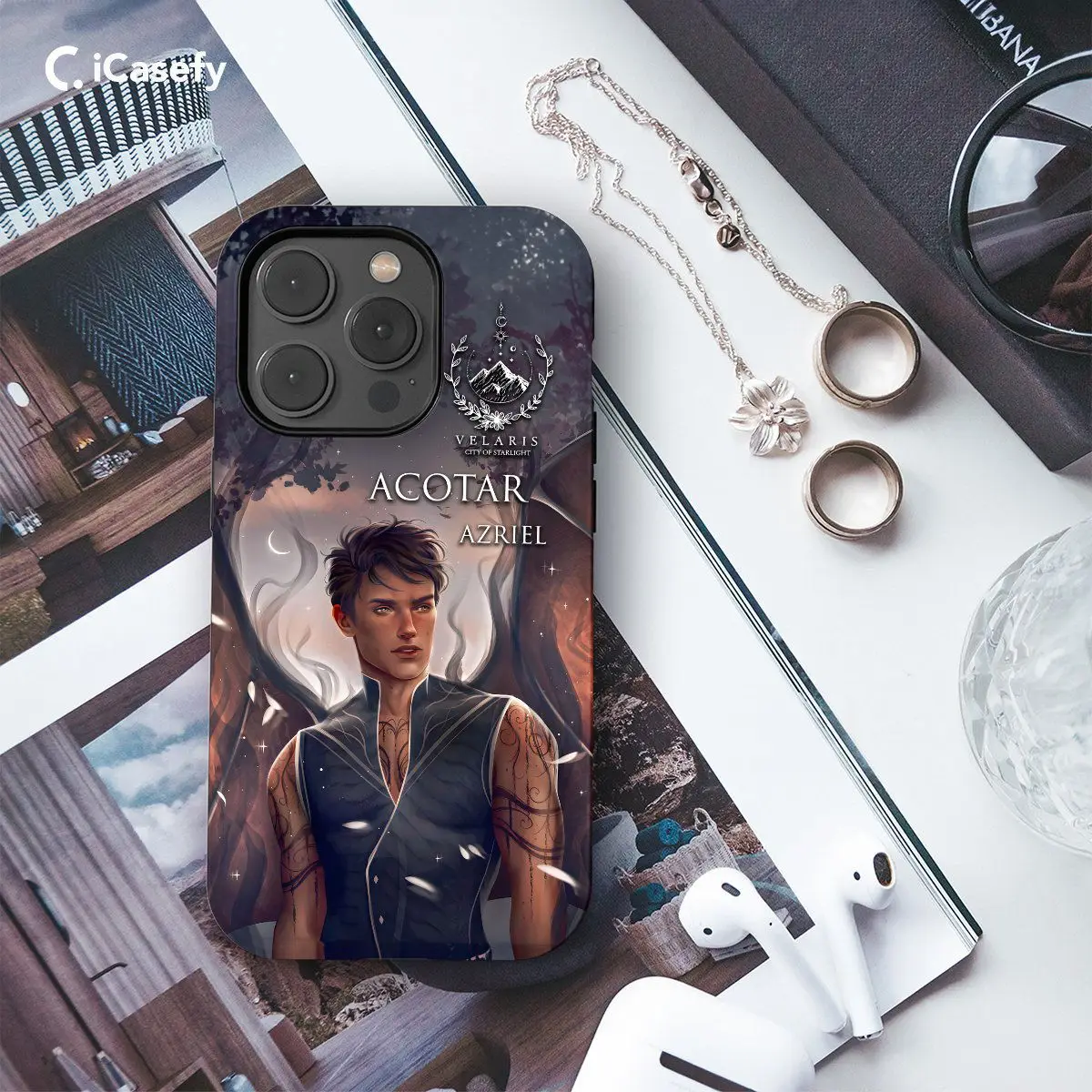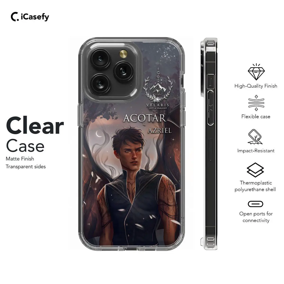 Elevate your phone's aesthetic with our Night Court Symbol Acotar Acomaf Velaris Mountain Stars Azriel phone case. Featuring the iconic Night Court Symbol and a backdrop of Velaris Mountain Stars, this case pays tribute to the enchanting world of Azriel from the ACOTAR and ACOMAF series. Carry the magic of the Night Court with you while protecting your device in style.
