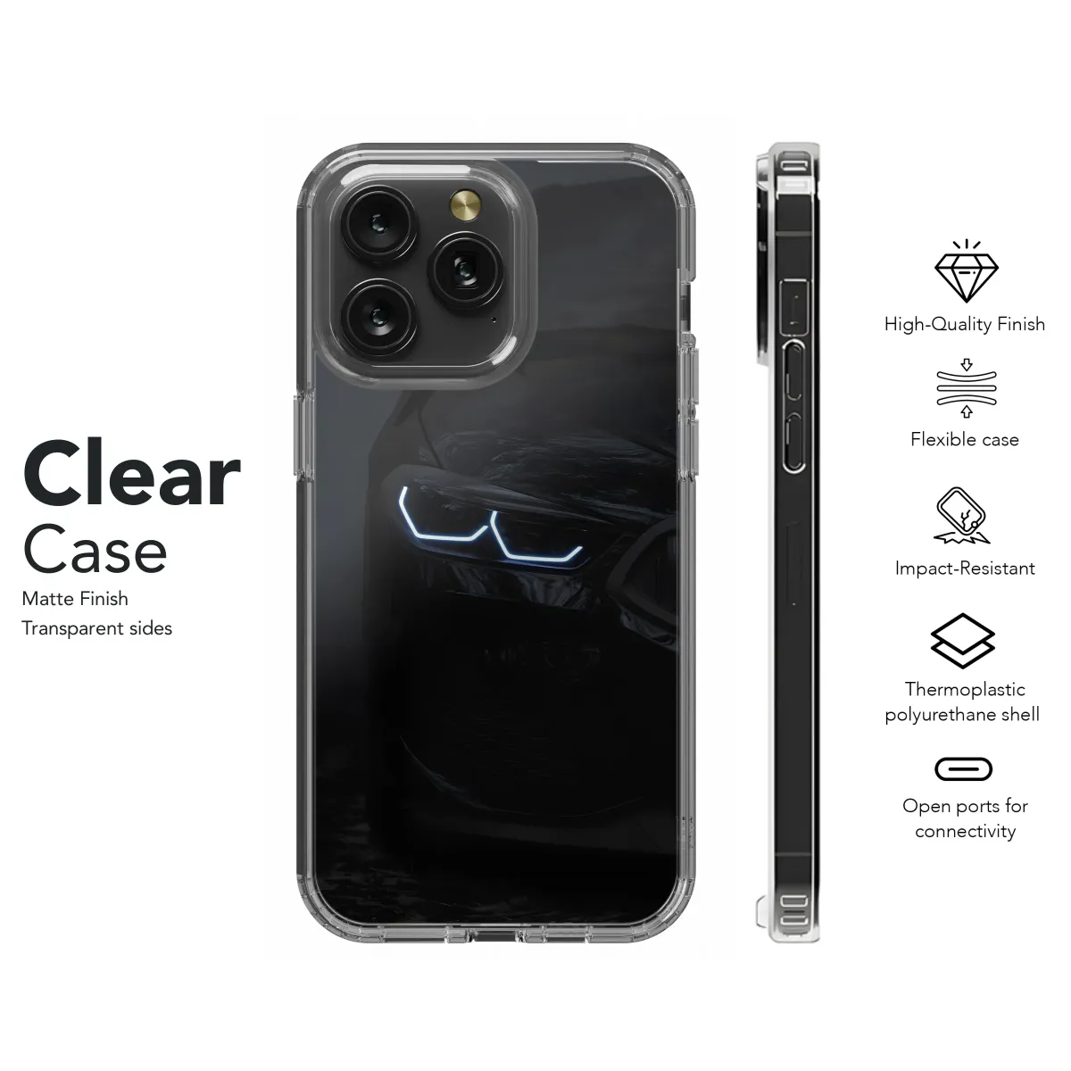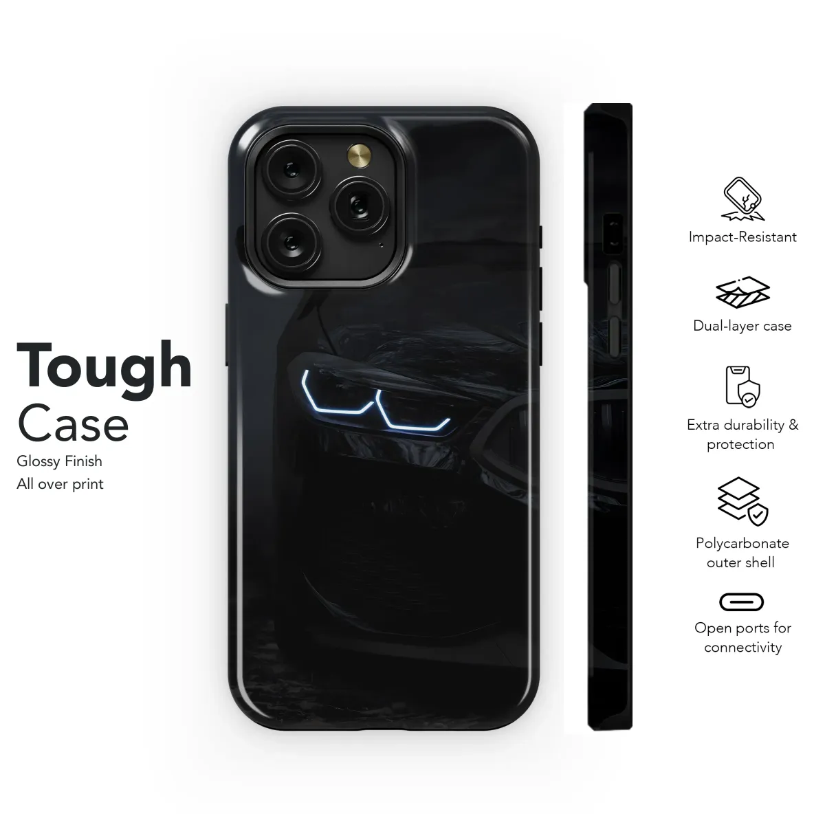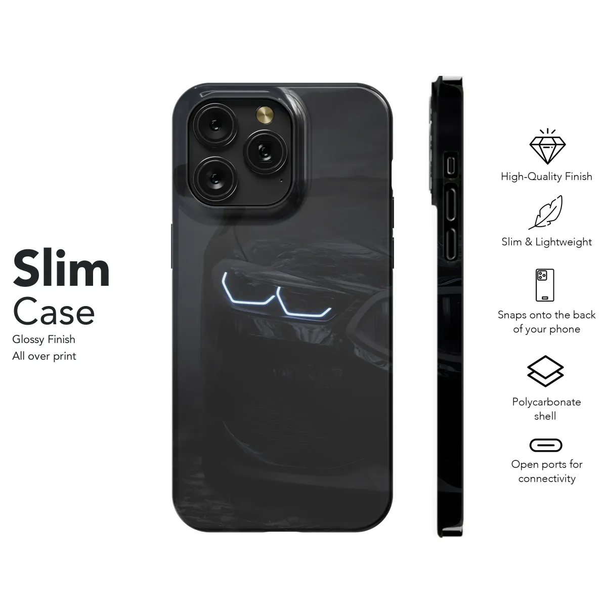 Elevate your style with this sleek, nighttime-inspired design. The captivating image of a luxury car's headlamps, glowing intensely against a dark backdrop, adds a touch of sophisticated mystery. This striking graphic transforms your device into a statement piece, reflecting your appreciation for fine details and powerful aesthetics. Its vibrant print quality ensures the image's depth and brilliance remain undiminished, showcasing the intricate details of the automotive masterpiece. This design is perfect for the modern individual who desires to express their refined taste through personalized accessories. The contrasting light and dark tones create a visually arresting image, making your device instantly recognizable. Showcase your individuality with this unique and eye-catching design. Protect your device with style and sophistication, transforming it from ordinary to extraordinary with this high-quality, durable print. Perfect for gifting or personal use, this design is a testament to understated elegance and modern flair. Add a touch of nighttime allure to your everyday carry.