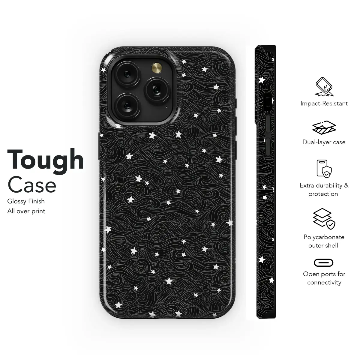 Embrace the celestial with this dreamy design, featuring a captivating swirl pattern reminiscent of a night sky brimming with stars. The elegant grayscale palette creates a sophisticated and calming aesthetic, perfect for adding a touch of magic to your everyday life. This enchanting print is meticulously crafted to provide vibrant, long-lasting color and detail. Its versatile design complements any style, making it an ideal accessory for those who appreciate understated elegance and celestial charm. The intricate swirls and delicate star accents create a visually stunning effect, turning your accessory into a wearable work of art. This design is printed using high-quality, durable inks for a finish that resists fading and scratches, ensuring its beauty endures. Add a touch of cosmic wonder to your personal style with this unique and stylish print, guaranteed to be a conversation starter. The subtle details and captivating overall design make this a must-have for anyone who appreciates celestial beauty and minimalist design. Transform your accessory into a personal galaxy with this striking and timeless piece.