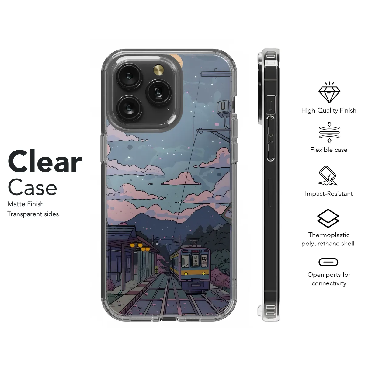 Protect your phone in style with our Night Train Cityscape Phone Case. This sleek case features a stunning cityscape design that will turn heads. Its durable construction will keep your phone safe from bumps and scratches, while the slim profile ensures it fits easily in your pocket or purse. Available for a variety of iPhone, Samsung, and Pixel models.