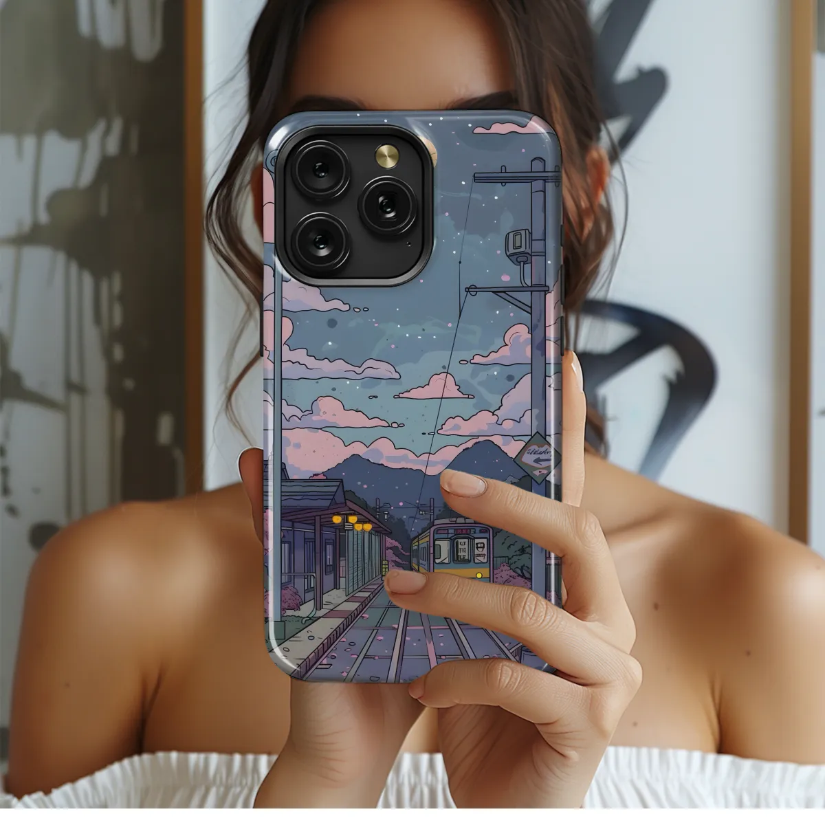 Protect your phone in style with our Night Train Cityscape Phone Case. This sleek case features a stunning cityscape design that will turn heads. Its durable construction will keep your phone safe from bumps and scratches, while the slim profile ensures it fits easily in your pocket or purse. Available for a variety of iPhone, Samsung, and Pixel models.