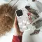 Embrace the magic of a cozy winter wonderland with this charming Scandinavian-inspired design. The pattern features elegant white reindeer and sweet sleeping polar bears nestled in a snowy forest of stylized trees and mountains. Adorned with delicate snowflakes, crescent moons, and sprigs of holly, this design captures a peaceful, whimsical holiday spirit on a soft, neutral grey background.