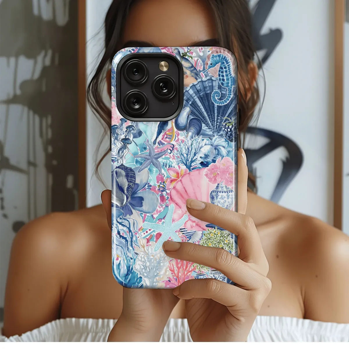 Dive into an ocean dream with this stunning phone case. Featuring a mesmerizing dreamscape print, this cover protects your iPhone, Samsung, or Pixel (4, 5, 7, 7 Pro) in style.