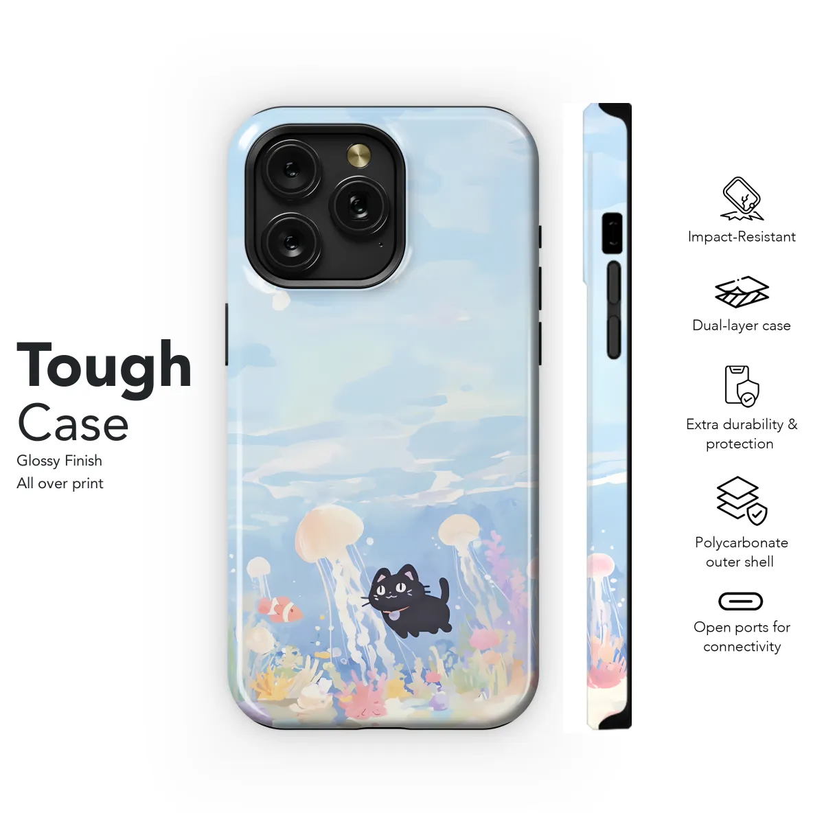 Escape into a whimsical dreamscape with our Ocean Kitty Phone Case. Adorned with vibrant hues and whimsical designs, this case will transform your device into a marine paradise. Immerse yourself in the tranquil waters filled with adorable kittens, creating a magical haven on your fingertips. The durable construction ensures your phone remains protected, while the sleek design adds a touch of feline elegance to your daily adventures. Let Ocean Kitty Dreamscape be your escape from the ordinary, turning your phone into a canvas for your imagination.