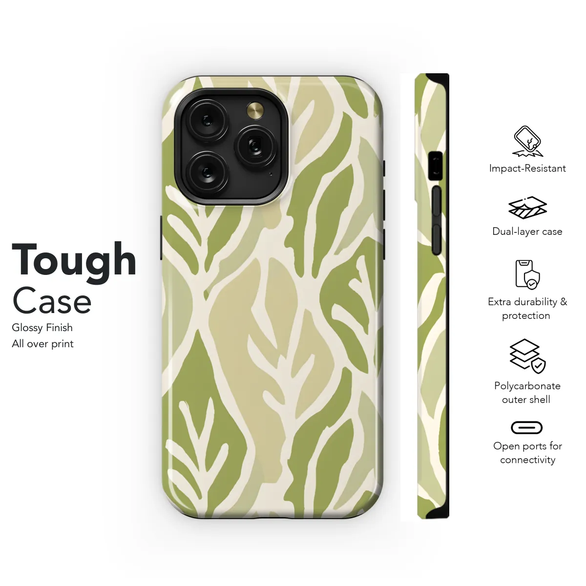 Protect your phone in style with our elegant Ogee Leaf Print Phone Case. The intricate leaf motif adds a touch of botanical beauty to your device, while the durable construction provides superior protection against scratches, bumps, and drops. Designed to perfectly fit your specific iPhone, Samsung, or Pixel model, this case ensures easy access to all buttons and ports. Elevate your phone's aesthetics and safeguard it with our exquisite Ogee Leaf Print Phone Case.