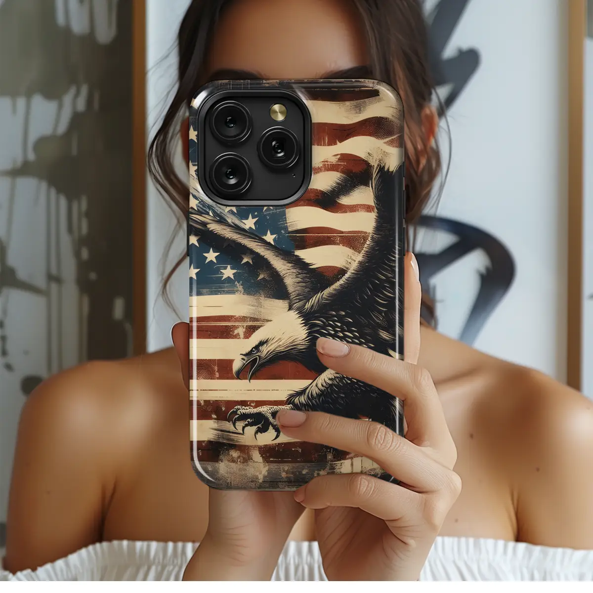Express your American pride with our captivating Oil Painting Americana Patriotic Eagle Phone Case. This stunning case transforms your phone into a masterpiece, featuring an intricate oil painting of a majestic eagle soaring against the backdrop of the American flag. The vibrant colors and meticulous brushstrokes bring the artwork to life, adding a touch of elegance and patriotism to your device. Crafted from premium materials, this case provides reliable protection against scratches, bumps, and drops, ensuring your phone remains pristine. Whether you're attending a patriotic event, celebrating Independence Day, or simply want to display your American spirit, this phone case is the perfect accessory. Show off your love for your country in style with our Americana Patriotic Eagle Phone Case.