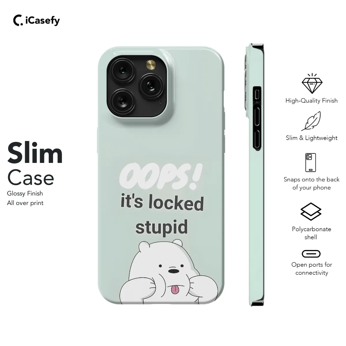 **Oops! It's Locked** Keep your tech safe and stylish with our "Oops! It's Locked" phone case. Featuring a playful and relatable quote, it's perfect for those moments when your phone seems to have a mind of its own. Made from durable and protective materials, this case will shield your phone from bumps, scratches, and accidental drops. Choose from a range of options to fit your iPhone, Samsung, Pixel, and other popular devices. Unleash your inner smart aleck with this witty and functional phone case. It's a fun and quirky way to keep your device secure and make a statement.