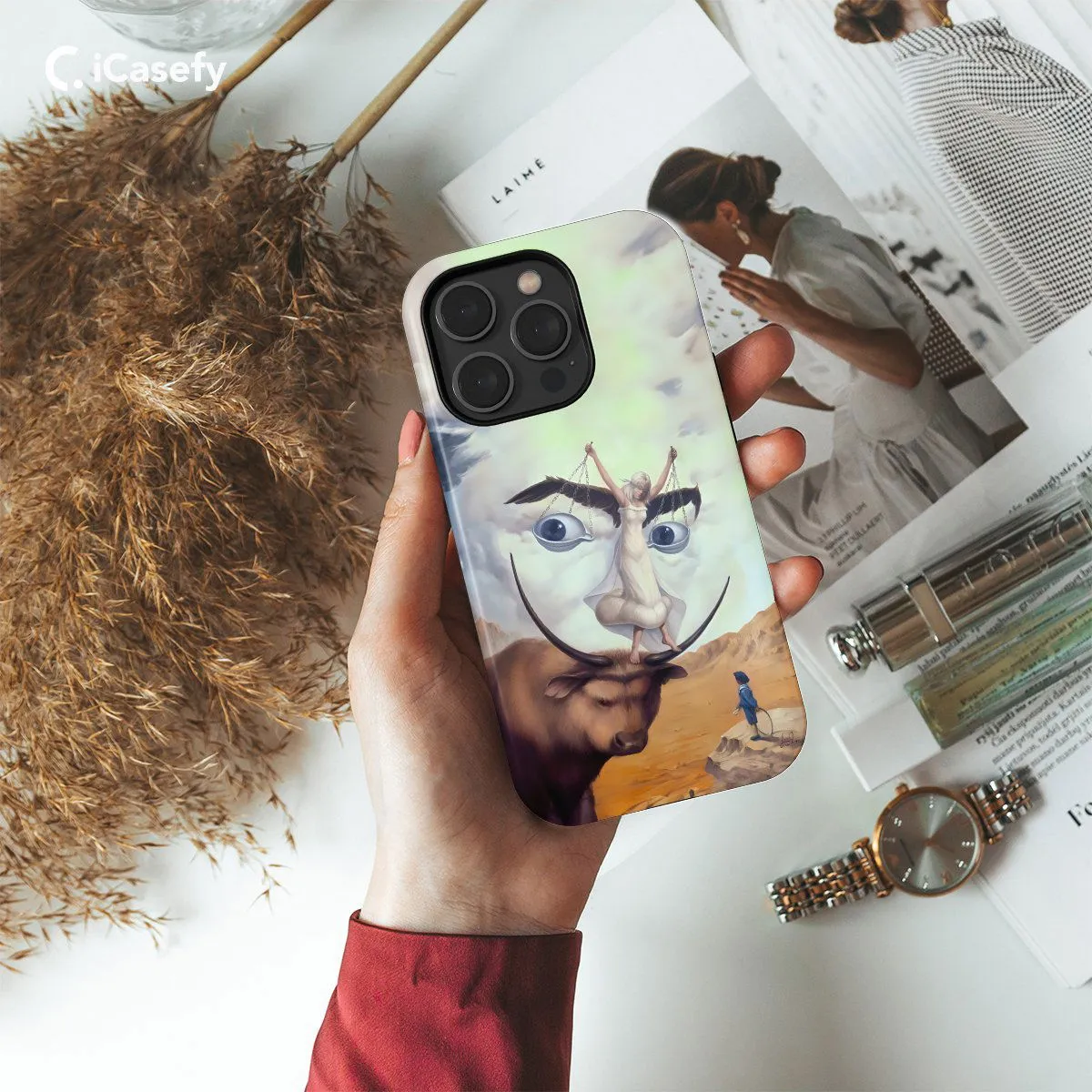 Step into the surreal world of Salvador Dali with an optical illusion phone case inspired by his iconic artworks. This accessory features mesmerizing patterns and imagery that play with perception, evoking intrigue and wonder. Carry a touch of artistic genius with you wherever you go, letting your device become a canvas for surrealism and creativity with this captivating Dali-inspired case.