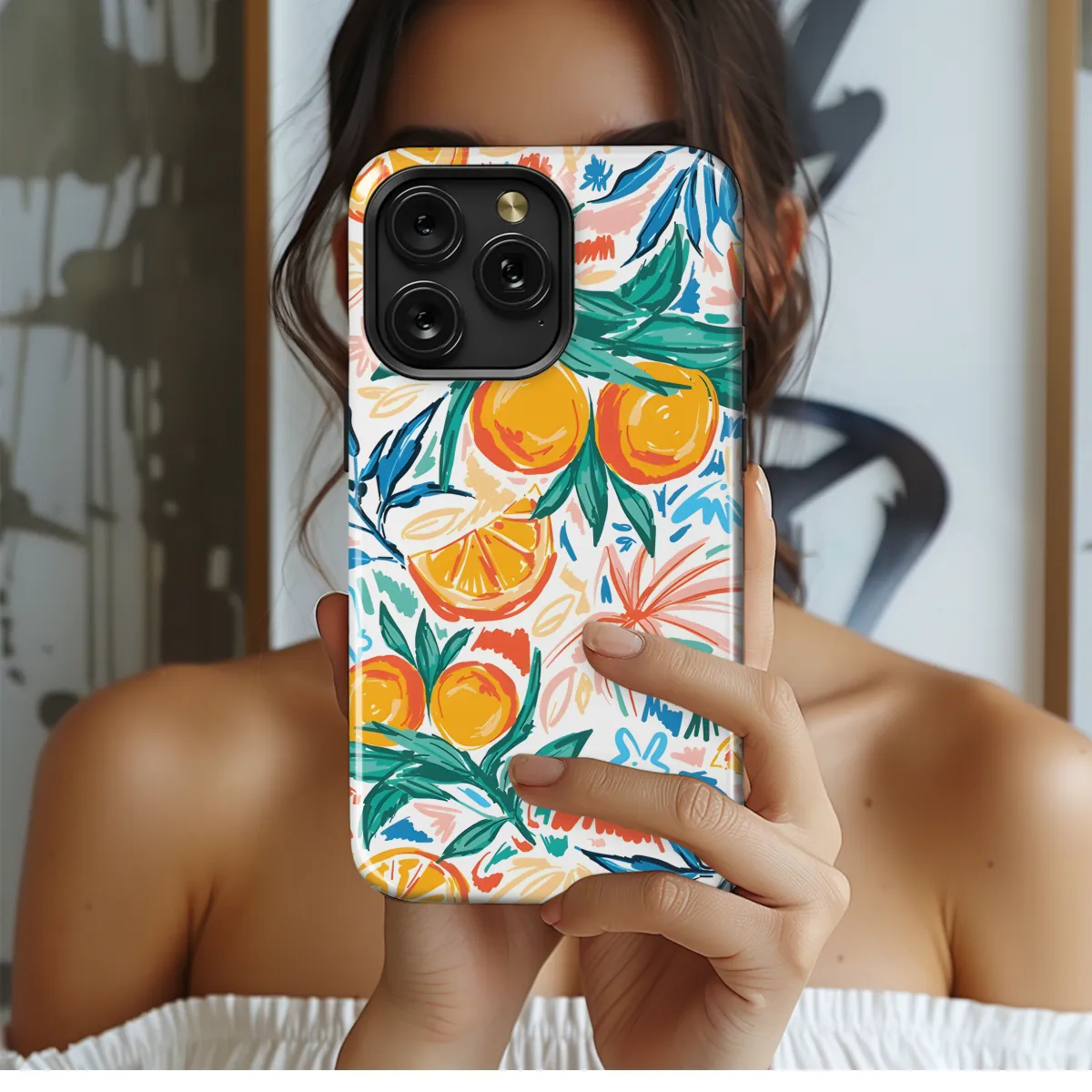 Show off your vibrant style with our Orange Fruit Leaf Pattern Phone Case. This protective cover features a unique and eye-catching design that will make your phone stand out. The high-quality material provides excellent protection against scratches, bumps, and drops. Available for iPhone, Samsung, and Pixel devices, this case ensures a perfect fit while showcasing your trendy personality.