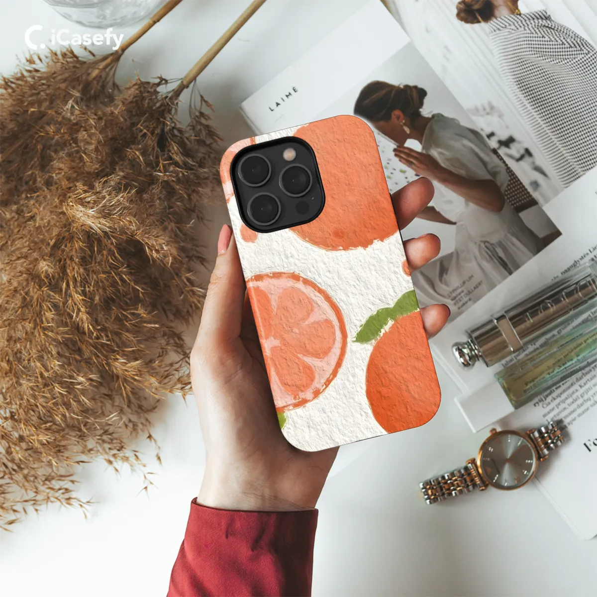 Experience a touch of citrusy style with our vibrant Oranges Paper Phone Case. Crafted from durable paper, this unique cover protects your iPhone, Samsung, or Pixel device from scratches and bumps while showcasing a vibrant orange hue that will add a pop of color to your everyday essentials.