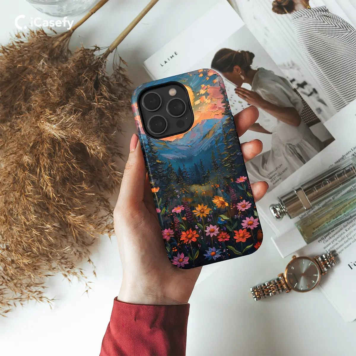 Capture the beauty of nature with our captivating phone case. Emblazoned with an enchanting painted landscape, this case transforms your device into a whimsical canvas. From blooming flower meadows to majestic mountains and serene skies, each brushstroke transports you to a peaceful and awe-inspiring realm. Available for a range of iPhone, Samsung, and Pixel models, this cover not only protects your phone but also adds a touch of artistry to your everyday tech.