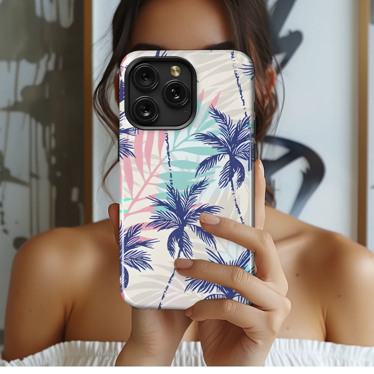 Protect your phone in style with our Palm Trees Phone Case. This case is made of durable material to protect your phone from scratches, dents, and other damage. The design features a vibrant palm tree print that will add a touch of tropical flair to your phone. The case is available for iPhone, Samsung, and Pixel phones.