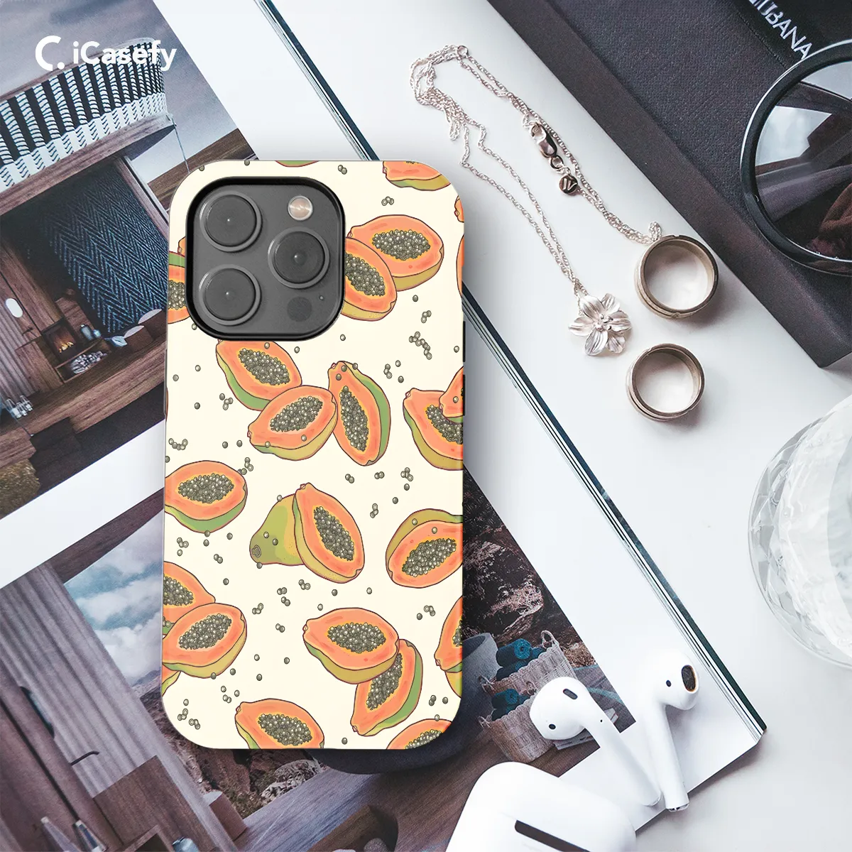 Protect your precious smartphone in style with our vibrant Papaya Phone Case. Available for iPhone, Samsung, Google Pixel, and more, this case boasts a unique and eye-catching design that will turn heads wherever you go. Its durable construction ensures your device stays safe from scratches, bumps, and drops, while its slim profile maintains the phone's sleek look. Treat yourself or your loved ones to the ultimate phone accessory that combines protection and fashion effortlessly.