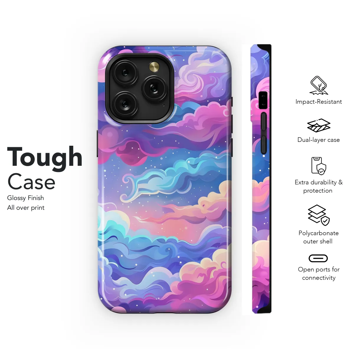 Escape into a dreamy celestial realm with our Pastel Galaxy Clouds phone case. Its ethereal design captures the swirling hues and soft textures of a distant nebula, creating a captivating and enchanting aesthetic. Adorned with a shimmering starfield, this case is perfect for those who seek solace and serenity in the cosmos.