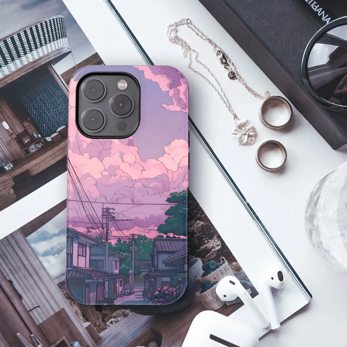 Escape to a pastel sky town with this enchanting phone case. Featuring a dreamy, celestial design, this case will add a touch of whimsy and wonder to your device. Available for iPhone, Samsung, and Pixel, it's the perfect accessory to protect your phone in style.