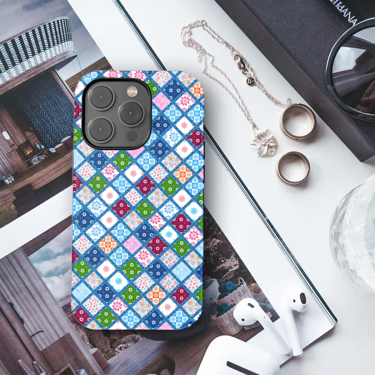 With its captivating patchwork diamond design, this phone case is sure to turn heads and showcase your unique style. Each diamond is meticulously stitched together, creating a vibrant and eye-catching pattern. Whether you choose the iPhone, Samsung, or Pixel model, this case will perfectly fit your device and provide reliable protection against bumps, scratches, and drops.