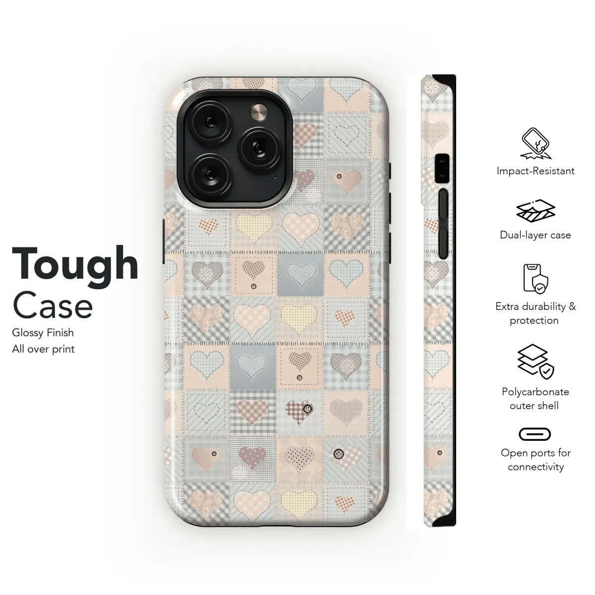 Embrace the eclectic spirit with our Patchwork Hearts Phone Case. This exquisite cover is adorned with a vibrant tapestry of hearts, each piece meticulously stitched together to create a captivating and unique masterpiece. From iPhone to Samsung and Pixel, this case is compatible with an array of smartphones, offering both protection and a touch of bohemian flair. The durable material safeguards your device from scratches and dings while ensuring a comfortable grip. Whether you're seeking an eye-catching accessory or a heartfelt gift, the Patchwork Hearts Phone Case is an irresistible choice.