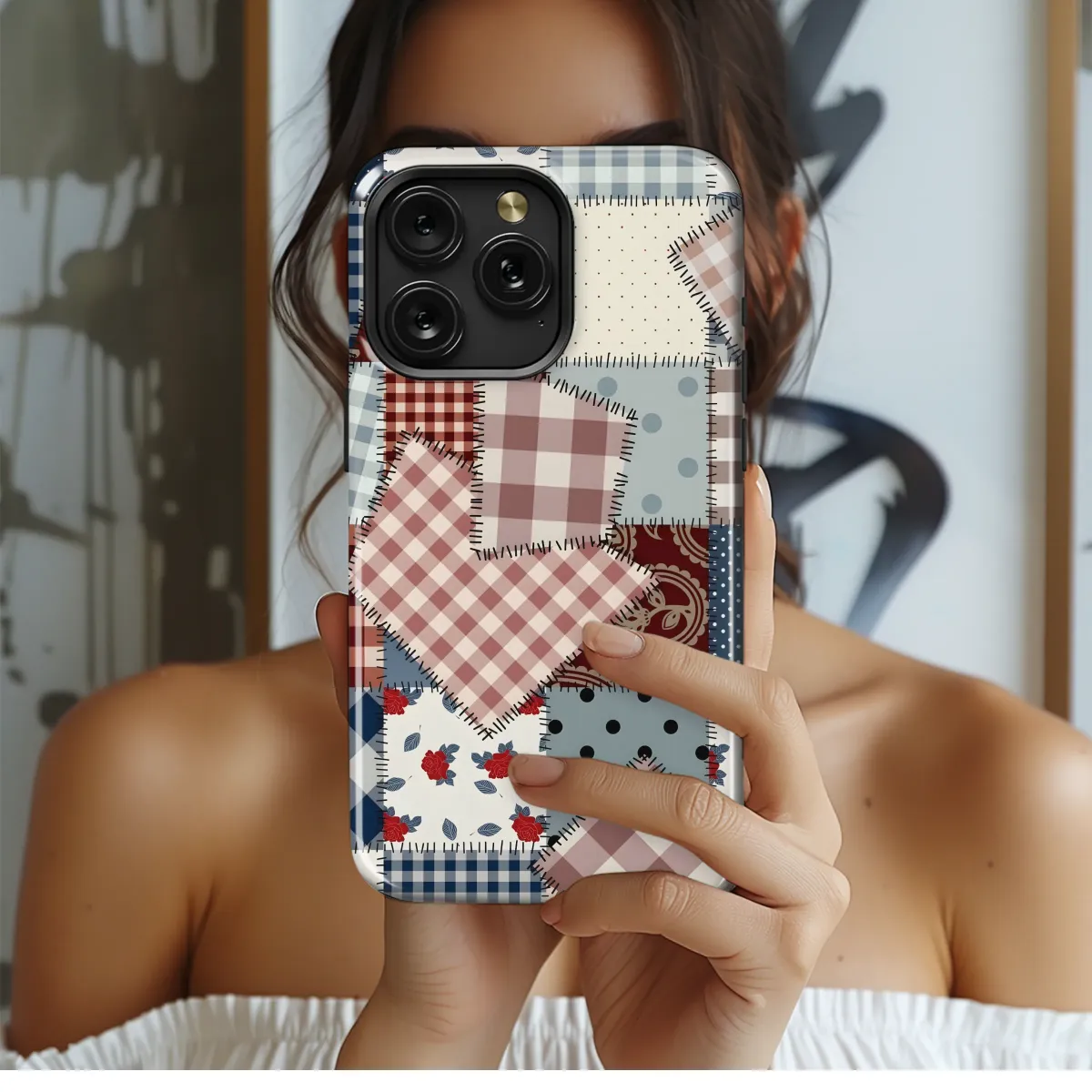 Showcase your unique style with this charming patchwork design, featuring a delightful mix of gingham, polka dots, floral prints, and paisley patterns. Each meticulously stitched square creates a visually stunning collage, reminiscent of a cherished handmade quilt. The rich color palette of deep blues, warm reds, and creamy off-whites evokes a sense of rustic charm and timeless elegance. This captivating print adds a touch of vintage-inspired artistry to your everyday essentials, making a statement wherever you go. The high-quality print ensures vibrant colors and exceptional detail that will last. This design is perfect for those who appreciate handcrafted aesthetics and desire a unique, eye-catching accessory to reflect their individuality. It's a great gift for yourself or someone who loves unique, beautifully designed items. Order yours today and experience the charm of this handcrafted-inspired design! This durable and stylish print offers a unique way to express your personality and add a touch of whimsy to your life. Perfect for adding a touch of vintage charm to your accessories, this pattern is sure to turn heads.