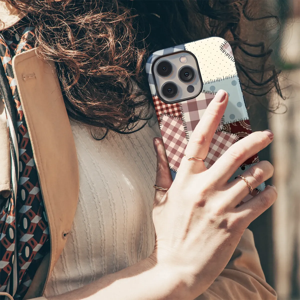 Showcase your unique style with this charming patchwork design, featuring a delightful mix of gingham, polka dots, floral prints, and paisley patterns. Each meticulously stitched square creates a visually stunning collage, reminiscent of a cherished handmade quilt. The rich color palette of deep blues, warm reds, and creamy off-whites evokes a sense of rustic charm and timeless elegance. This captivating print adds a touch of vintage-inspired artistry to your everyday essentials, making a statement wherever you go. The high-quality print ensures vibrant colors and exceptional detail that will last. This design is perfect for those who appreciate handcrafted aesthetics and desire a unique, eye-catching accessory to reflect their individuality. It's a great gift for yourself or someone who loves unique, beautifully designed items. Order yours today and experience the charm of this handcrafted-inspired design! This durable and stylish print offers a unique way to express your personality and add a touch of whimsy to your life. Perfect for adding a touch of vintage charm to your accessories, this pattern is sure to turn heads.