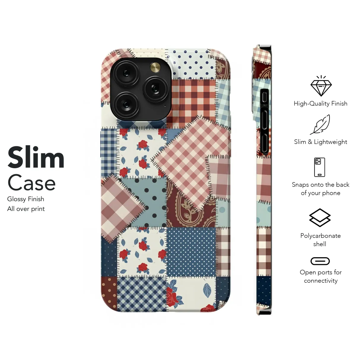 Showcase your unique style with this charming patchwork design, perfect for adding a touch of rustic elegance to your everyday essentials. This vibrant print features a captivating blend of gingham checks, polka dots, floral motifs, and paisley patterns, all meticulously stitched together to create a captivating collage. The rich color palette of deep reds, navys, and creams evokes a sense of vintage charm and cozy comfort. This eye-catching design is sure to turn heads and spark conversations. Its versatile aesthetic complements a variety of personal styles, making it an ideal accessory for individuals who appreciate handcrafted details and unique designs. The high-quality print ensures that the vibrant colors and intricate patterns will remain vivid and clear, adding a touch of personality to your device. Add a touch of handcrafted beauty to your life with this timeless and stylish design, a perfect blend of nostalgia and modern appeal. This design makes a thoughtful and unique gift or a perfect treat for yourself. Order yours today and experience the joy of personalized style!