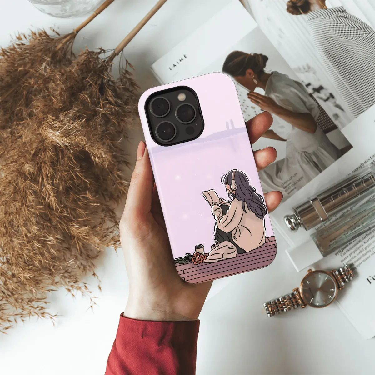 Oppo Reno8 Pro Peaceful Lakeside Reading Phone Case - Image 1