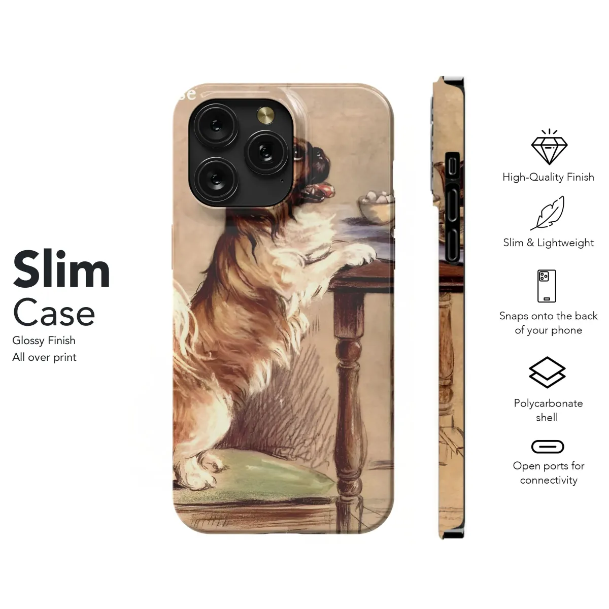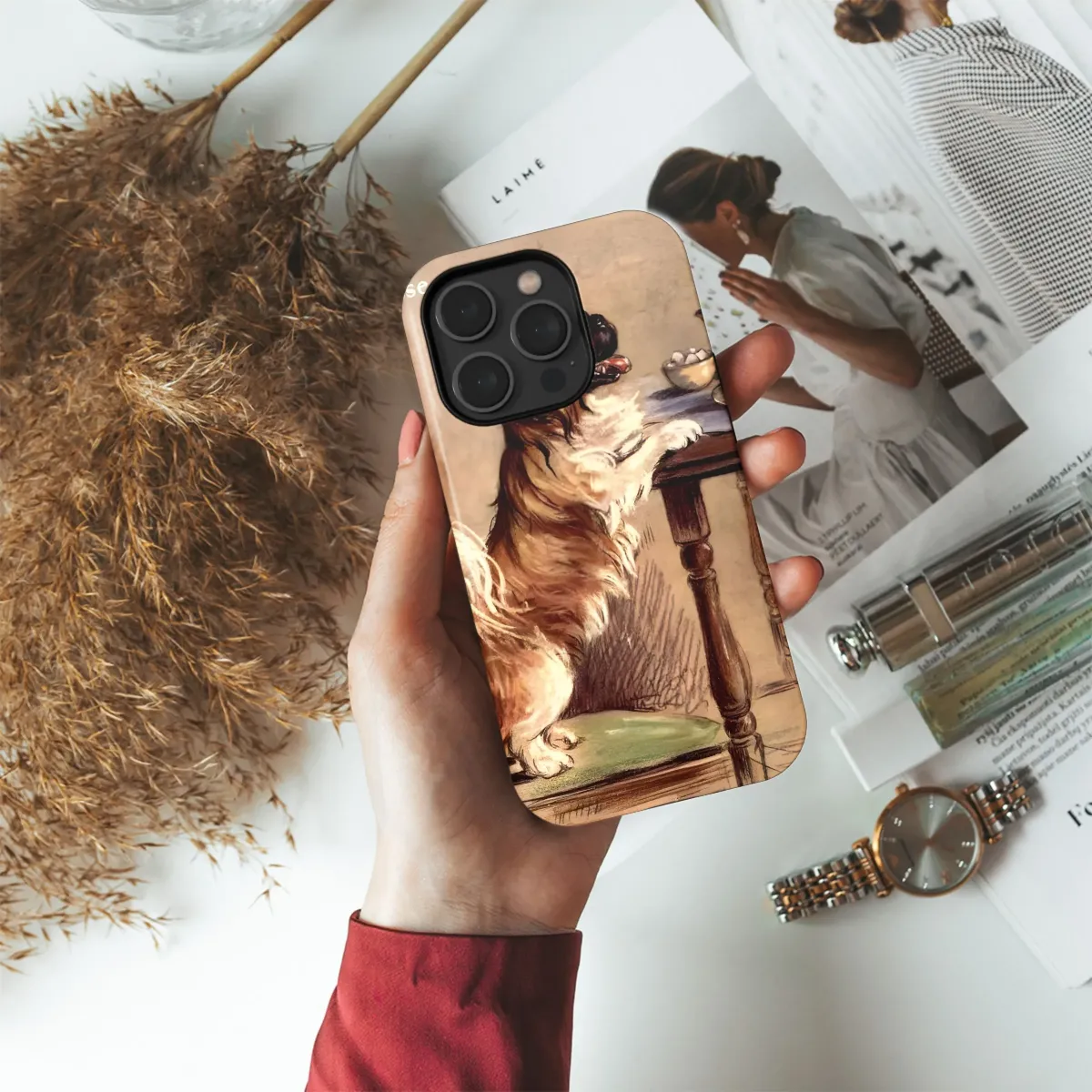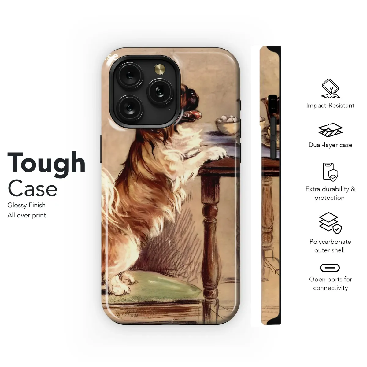 A charming Pekingese tea party design decorates this durable phone case. Available for iPhone, Samsung, and Pixel models. Protect your phone in style!