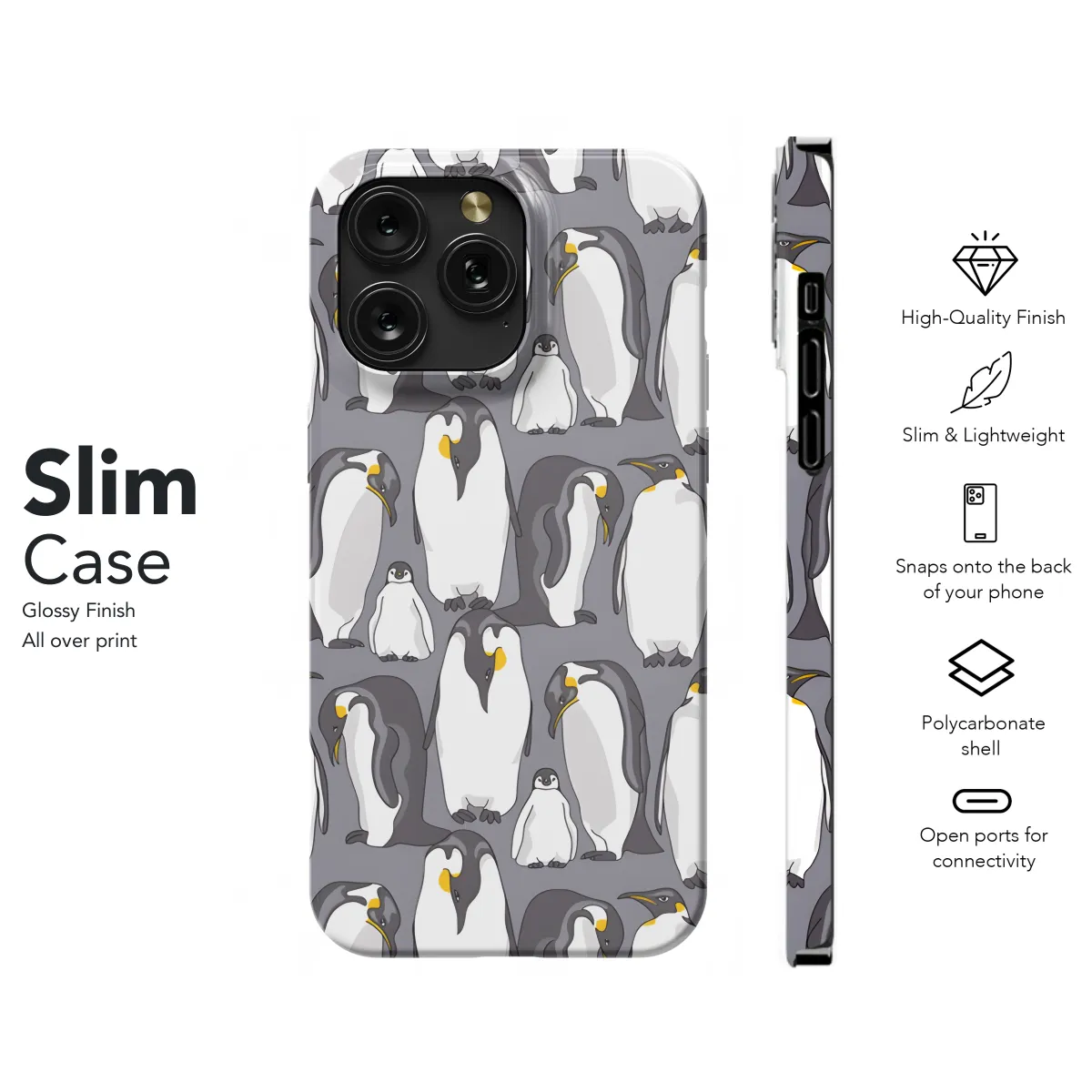 **Penguin Phone Case: Protection with a Dash of Cuteness** Embrace the adorable charm of our Penguin Phone Case, a protective haven for your beloved device. Its playful penguin design will brighten your day and bring a smile to your face. Crafted with durable materials, this cover shields your phone from bumps, scratches, and daily wear and tear. It's designed to fit perfectly on your iPhone, Samsung, or Pixel device, providing a snug and secure fit. With its unique and eye-catching design, this case not only protects your phone but also adds a touch of whimsy to your everyday style. Let the adorable penguin begleiten you on all your adventures, keeping your device safe and your spirits high.