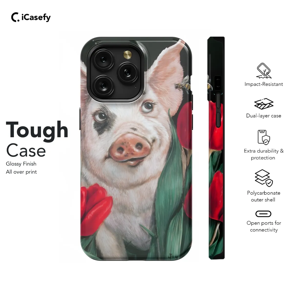 Show off your love for all things cute and whimsical with our Pig and Tulips Phone Case! This charming case features an adorable pig surrounded by a field of vibrant tulips, adding a touch of springtime to your phone. Its sleek design fits snugly around your iPhone, Samsung, or Pixel, protecting it from bumps and scratches. Whether you're a pig enthusiast or just appreciate the beauty of nature, this case is sure to make you smile every time you use your phone.