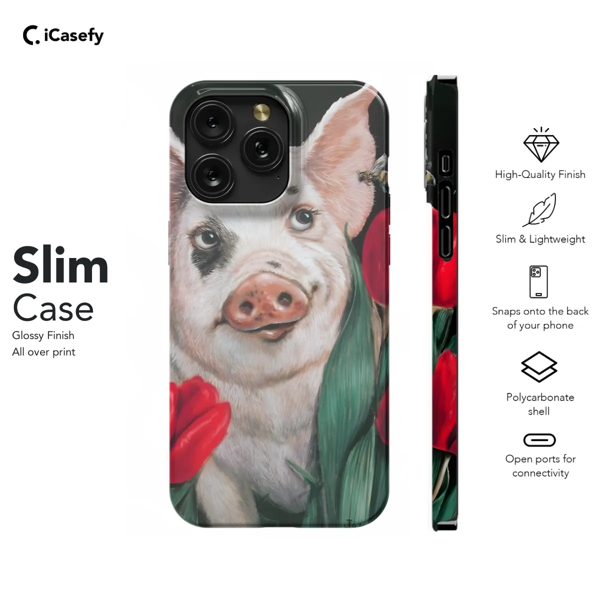 Show off your love for all things cute and whimsical with our Pig and Tulips Phone Case! This charming case features an adorable pig surrounded by a field of vibrant tulips, adding a touch of springtime to your phone. Its sleek design fits snugly around your iPhone, Samsung, or Pixel, protecting it from bumps and scratches. Whether you're a pig enthusiast or just appreciate the beauty of nature, this case is sure to make you smile every time you use your phone.