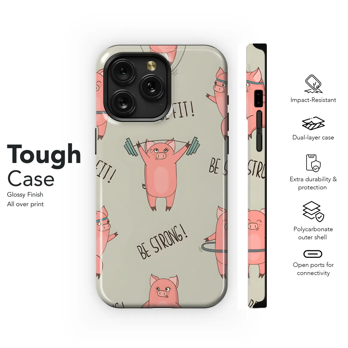 Protect your phone in style with this adorable pig exercise gym phone case! Perfect for any animal lover, this case features a cute pig working out on a gym bench. The case is made of durable TPU material to protect your phone from scratches and drops. Available for a variety of iPhone, Samsung, and Pixel models.
