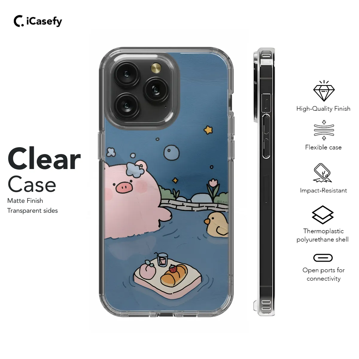 Protect your phone in style with our adorable pig phone case. This case is made from durable materials to withstand everyday wear and tear, and it features a cute pig design that will make you smile every time you look at it. Our pig phone case is available for a variety of iPhone, Samsung, and Google Pixel models. It's easy to install and remove, so you can switch it up depending on your mood or outfit. This case is also compatible with wireless charging, so you don't have to worry about taking it off to power up your phone.