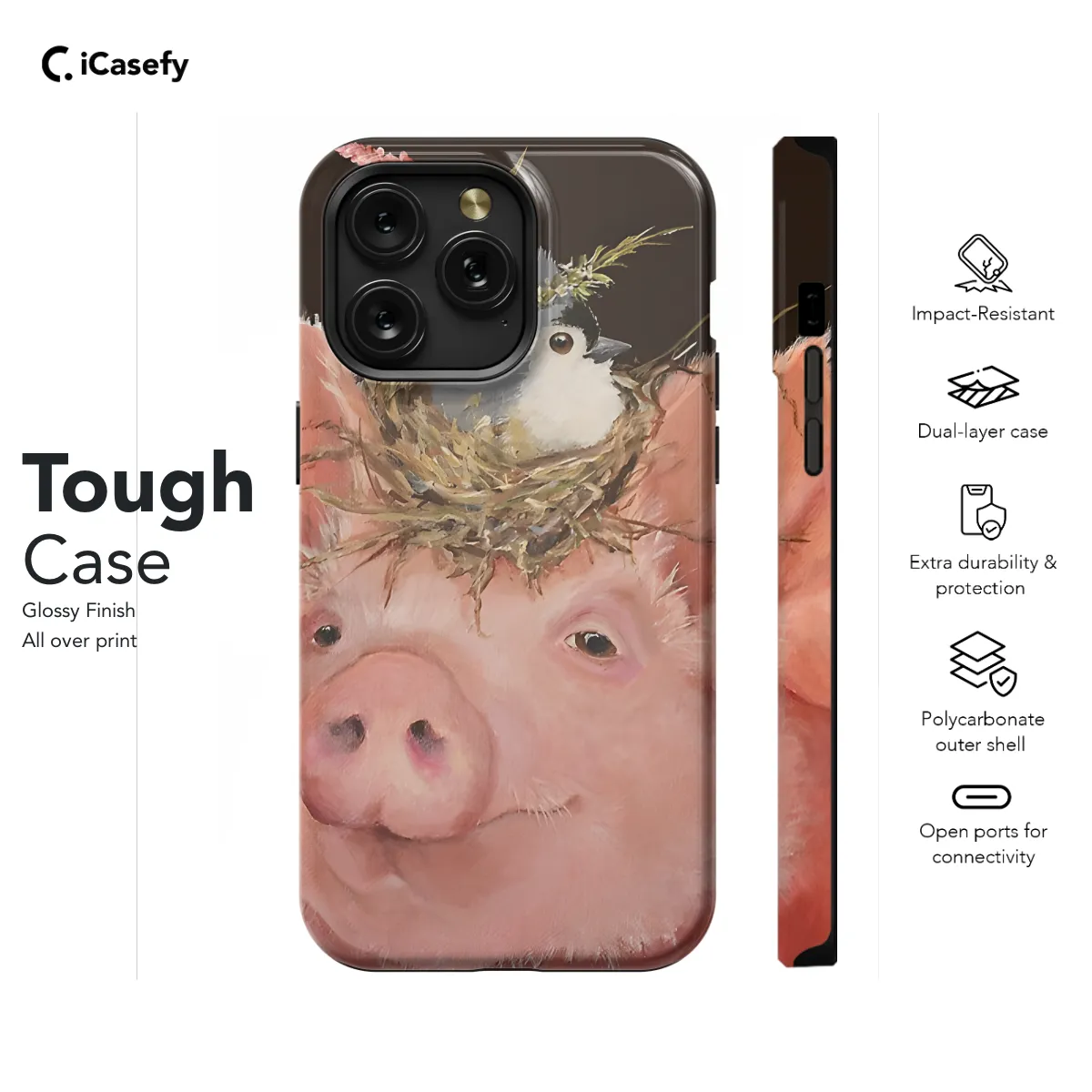 **Protect Your Device in Bird-Loving Style** Adorn your iPhone, Samsung, or Pixel with this whimsical phone case featuring a charming pig perched atop a cozy bird's nest. Crafted with precision, this case offers 270 degrees of rugged protection against scratches, bumps, and drops. **Features:** * Durable construction for ultimate device safety * Charming pig and bird's nest design that reflects your playful spirit * Compatible with various iPhone, Samsung, and Pixel models * Precision cutouts for seamless button and port access **Embrace the Delight:** From Bird Lovers to Nature Enthusiasts Indulge in the cutest accessory that will brighten up your daily routine and spark conversations. Let the playful pig and bird's nest motif add a touch of whimsical charm to your tech.