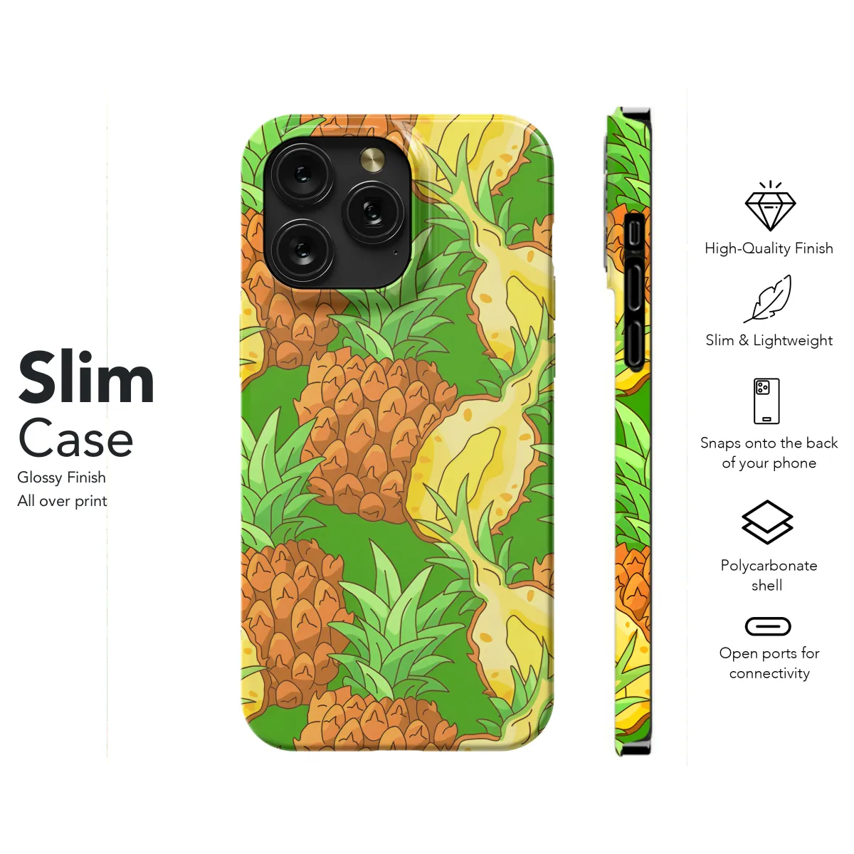 Escape the ordinary with our vibrant Pineapple Seamless Pattern Phone Case! This playful and tropical cover effortlessly protects your iPhone, Samsung, or Pixel device, adding a dash of sweetness to your everyday routine. The seamless pattern of juicy pineapples guarantees an eye-catching statement, transporting you to sun-soaked beaches with every glance.