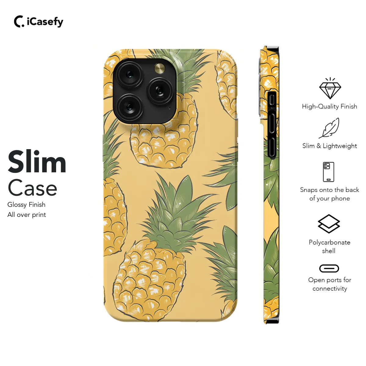Escape to the tropics with our vibrant Pineapple Spring Phone Case! This stylish accessory transforms your phone into a slice of Hawaiian paradise. Featuring a delightful pineapple print against a playful spring-inspired backdrop, your phone will be the envy of all. Its ultra-protective design safeguards your device from bumps, scratches, and everyday adventures. Available for iPhone, Samsung, Pixel, and more, this case will add a touch of fruity fun to any phone.