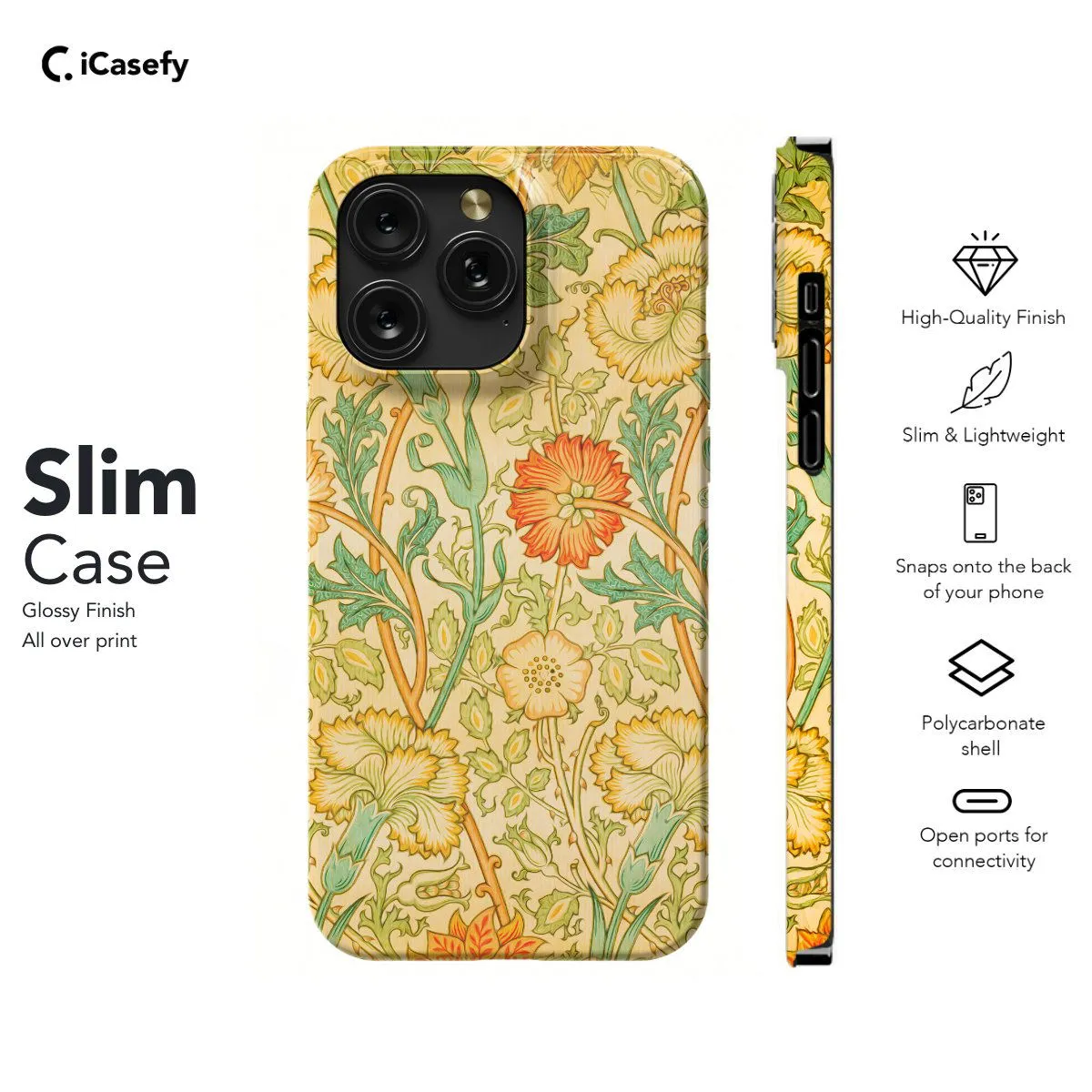 Embrace timeless elegance with our Pink and Rose William Morris Inspired Phone Case. Drawing inspiration from the iconic designs of William Morris, this case features intricate floral patterns in shades of pink and rose, exuding sophistication and charm. Crafted for both style and protection, it safeguards your phone while adding a touch of artistic flair. With precise cutouts for ports and buttons, it ensures seamless functionality. Elevate your phone's look with a touch of classic beauty using our William Morris Inspired Phone Case today!