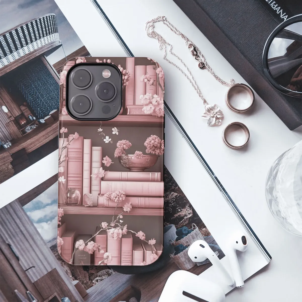 Carry a touch of literary charm with the Pink Bookcase Bloom phone case. Featuring a whimsical bookshelf design in soft pink hues, this case adds a stylish and protective layer to your iPhone, Samsung, or Pixel device (4, 6, 20).