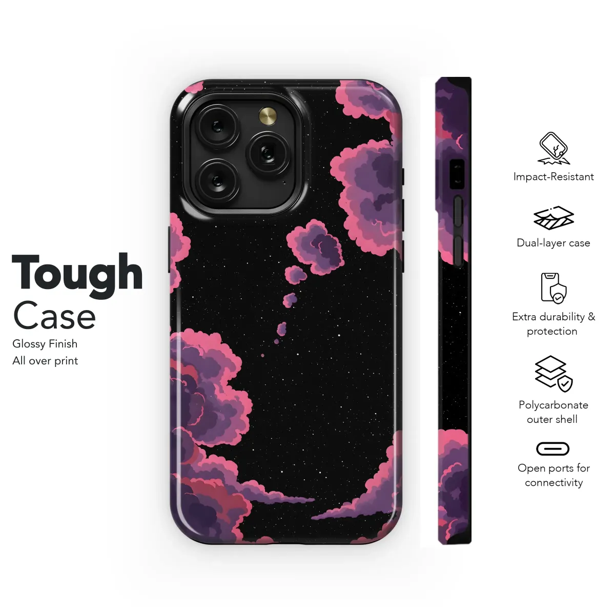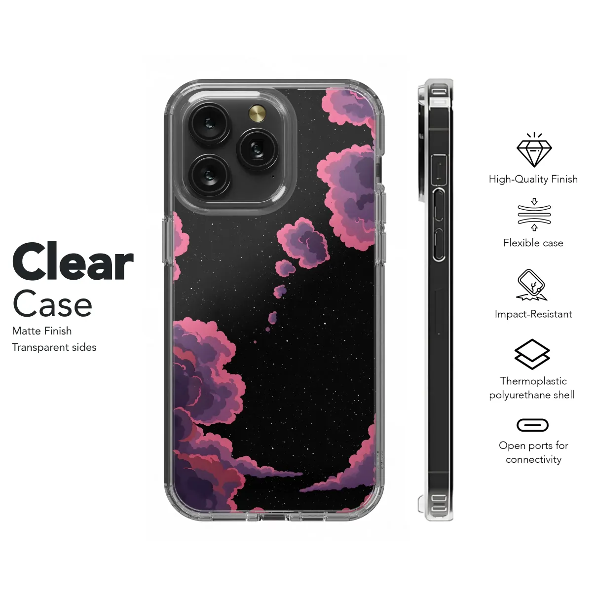 Adorn your device with this dreamy cosmic landscape. This vibrant design features a captivating night sky, dotted with countless twinkling stars, framed by fluffy, pastel pink and purple clouds. The illustration's unique blend of dark and light creates a striking aesthetic, perfect for those who appreciate whimsical art and celestial beauty. Its captivating design adds a touch of magic to your everyday life, transforming your device into a personalized piece of art. This high-quality print ensures vibrant colors and a long-lasting finish that will withstand daily wear and tear. A perfect gift for yourself or any space enthusiast, this design is guaranteed to turn heads. Get yours today and let your device reflect your unique style and passion for the cosmos. This eye-catching design is sure to become your favorite, making a bold statement wherever you go. #cosmicsky #nightclouds #stars #pastelpink #purpleclouds #whimsicalart #celestial #astronomy #spaceart #unique #personalized #gift #mobileaccessories #pretty #cute #aesthetic