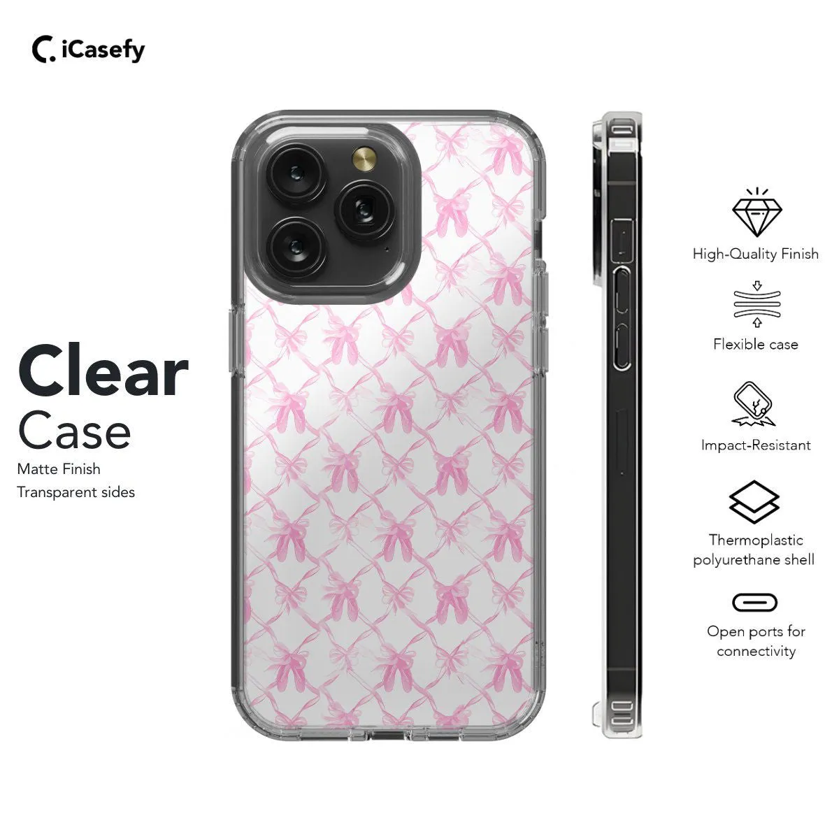 Add a touch of chic feminine elegance to your phone with our Pink Coquette Bow Pattern Phone Case. Featuring a stylish design of delicate bows against a soft pink backdrop, this case exudes sophistication and charm. Crafted for both style and protection, it safeguards your phone while making a fashion statement. With precise cutouts for ports and buttons, it ensures seamless functionality. Elevate your phone's look with the timeless appeal of our Pink Coquette Bow Pattern Phone Case today!