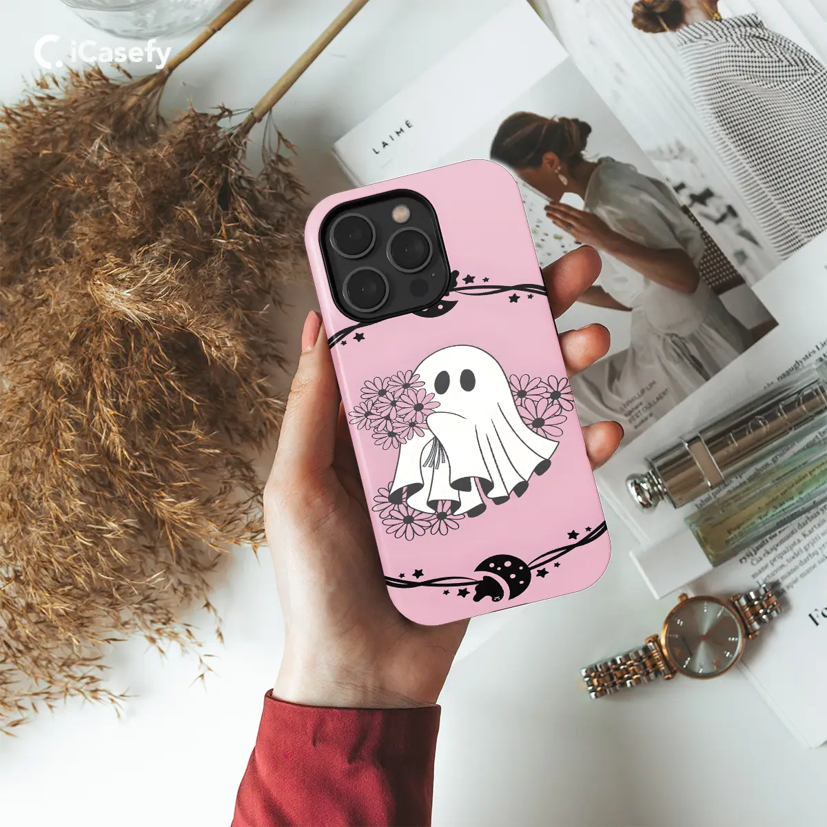 Spook up your phone with our adorable Pink Flower Cute Ghost Halloween Phone Case! 👻🌸 Perfect for the spooky season, it's designed to protect your iPhone, Samsung, or Pixel with its durable construction and eye-catching design. The case features a cute and playful ghost with a sweet pink flower on its head, adding a touch of whimsy to your Halloween aesthetic. 💀📲 Treat yourself or your loved ones to a unique and stylish phone accessory that'll keep their devices safe and stylish! #HalloweenCase #GhostPhoneCase #PinkFlower #CutePhoneCase #SpookyTech