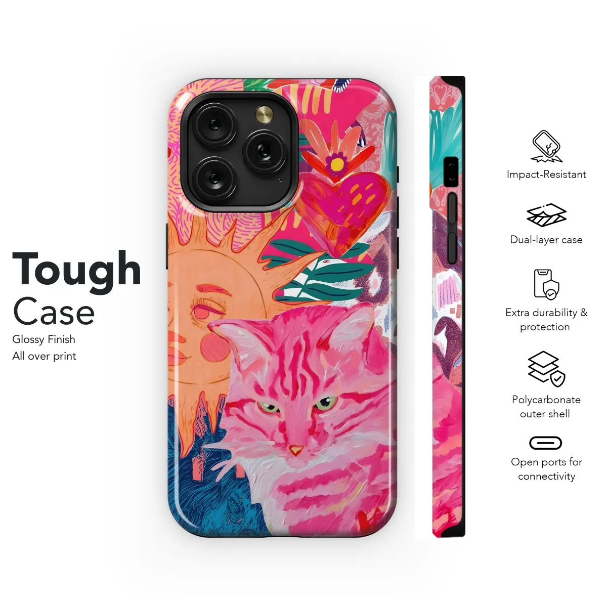 Protect your phone with style with our adorable Pink Kitty Collage Phone Case. Featuring a vibrant and playful design, this case is perfect for cat lovers. The durable construction safeguards your device from scratches, bumps, and drops, while the vibrant print adds a touch of personality to your everyday tech accessory.