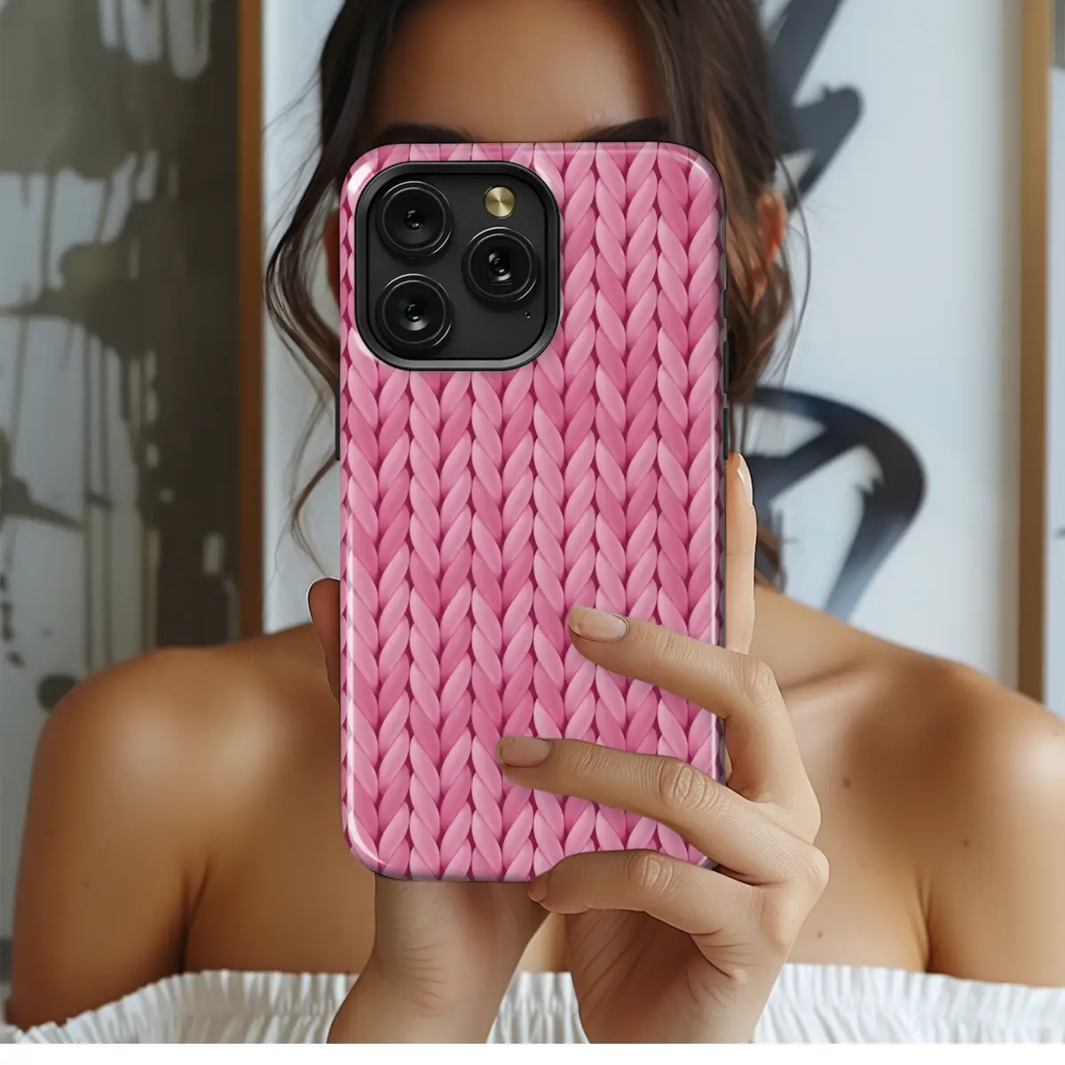 Embrace the spirit of love with this adorable pink knit phone case. Crafted from soft, cozy yarn, it's a perfect Valentine's Day gift that will keep your phone protected in style. Choose from iPhone, Samsung, or Pixel models to find the perfect fit for your device. The charming knit pattern adds a touch of warmth and romance to your phone, while the durable construction ensures it stays safe from bumps and scratches.