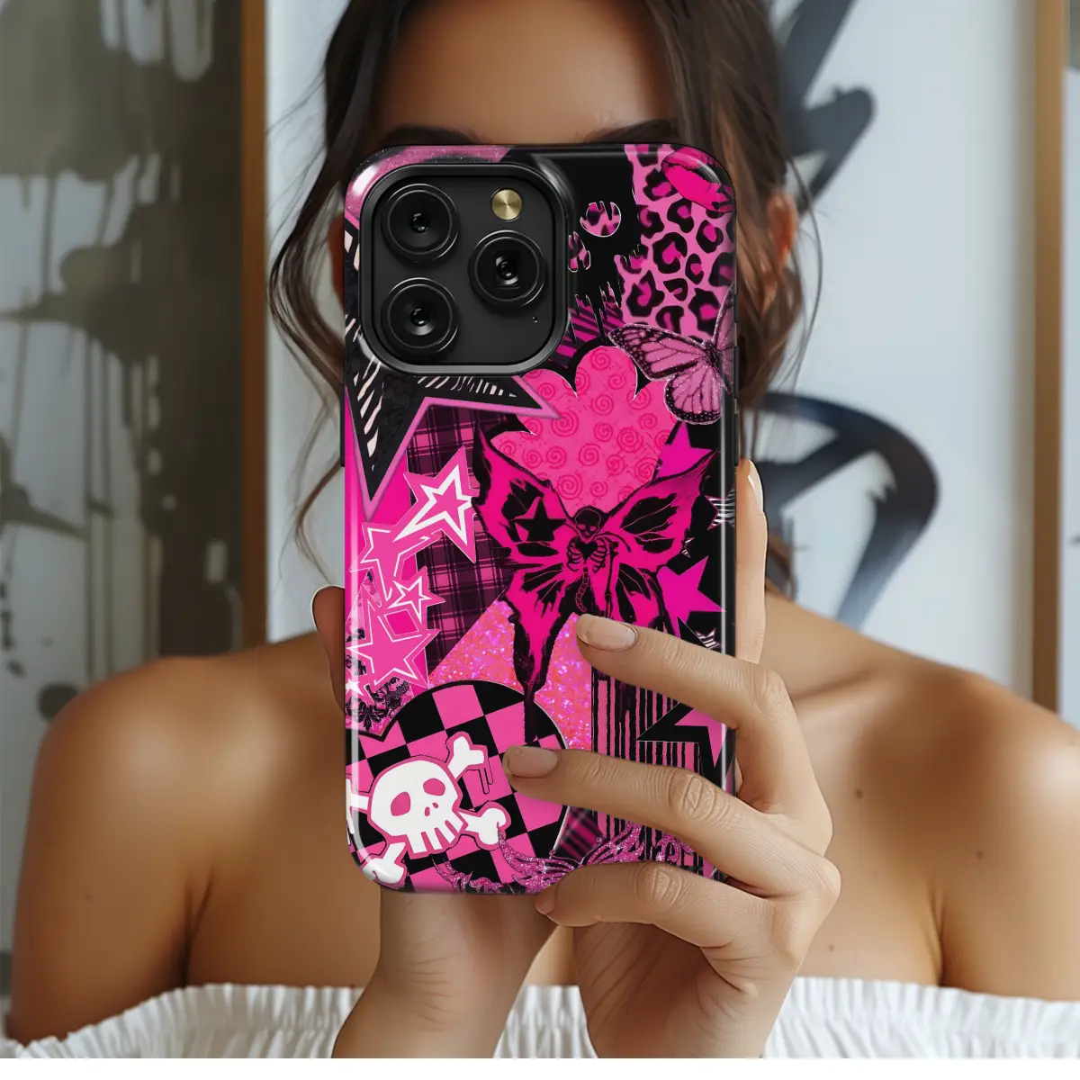 Protect your phone with style with this stunning Pink Skull Glam Design phone case. Featuring a captivating skull pattern adorned with glamorous accents, this case exudes a unique and edgy aesthetic. Its durable construction offers reliable protection against scratches, bumps, and drops, while its precise cutouts ensure easy access to all ports and buttons. Embrace the bold and glamorous spirit with this Pink Skull Glam Design phone case, available for iPhone, Samsung, and Pixel devices.